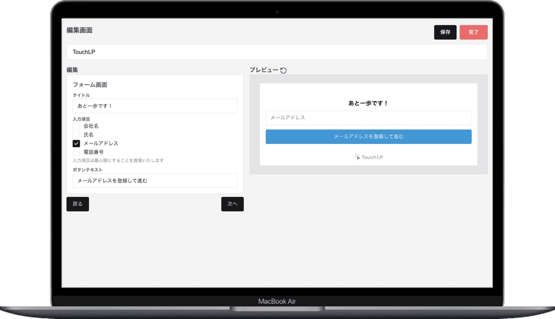 コンテンツの導線の中にリード情報を獲得するフォームを設置することできます。 ユーザによるメールアドレスの登録があったタイミングでメール配信を行うことも可能です。